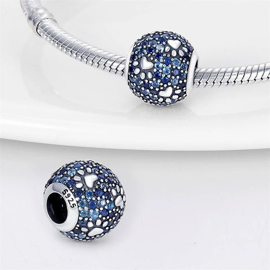 Pawprint Trail Charm Sterling Silver S925 Pet Dog Cat Blue