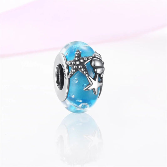 Blue Ocean Charm Sterling Silver S925 Beach Starfish Shell Glass Bead