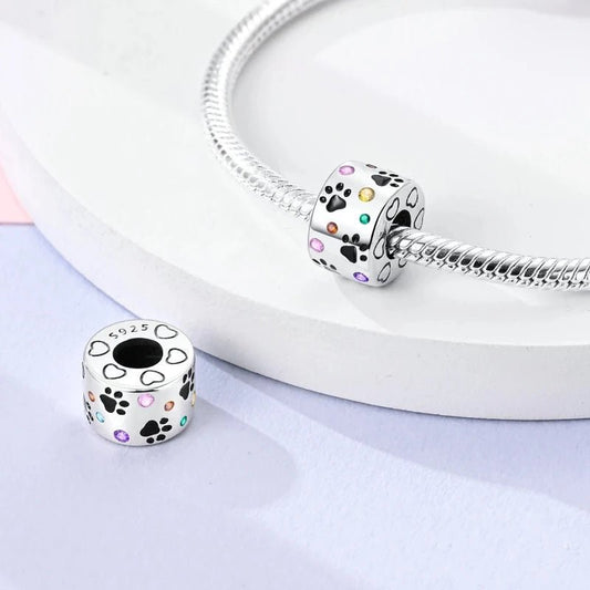 Pawprint Trail Charm Sterling Silver S925 Colorful Pet Dog Cat
