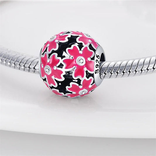 Pink Flowers Charm Sterling Silver S925 Dangling Garden