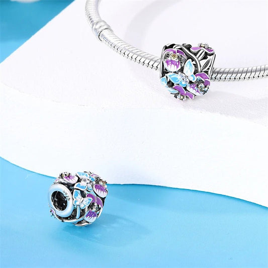 Blooming Flower Garden Charm Sterling Silver S925 Nature Butterfly