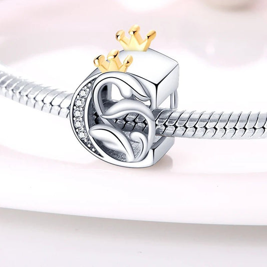 C Letter Charm Sterling Silver S925 Initial Crown Alphabet